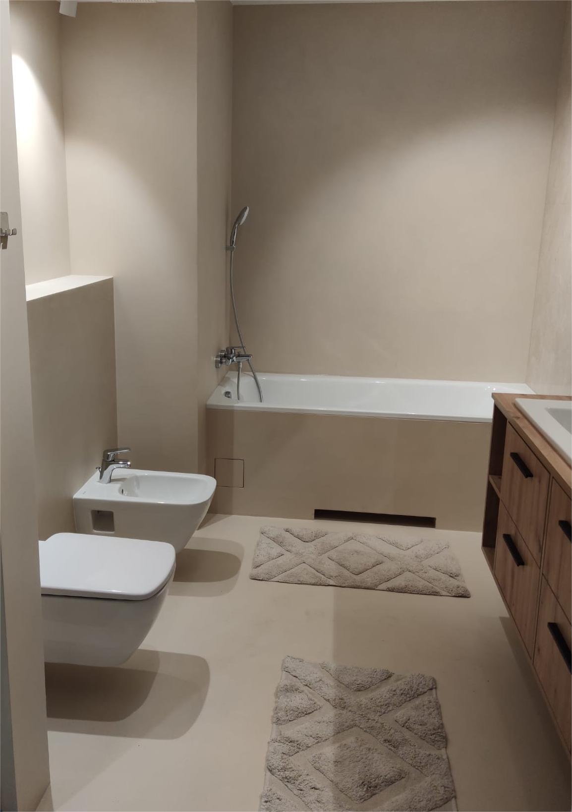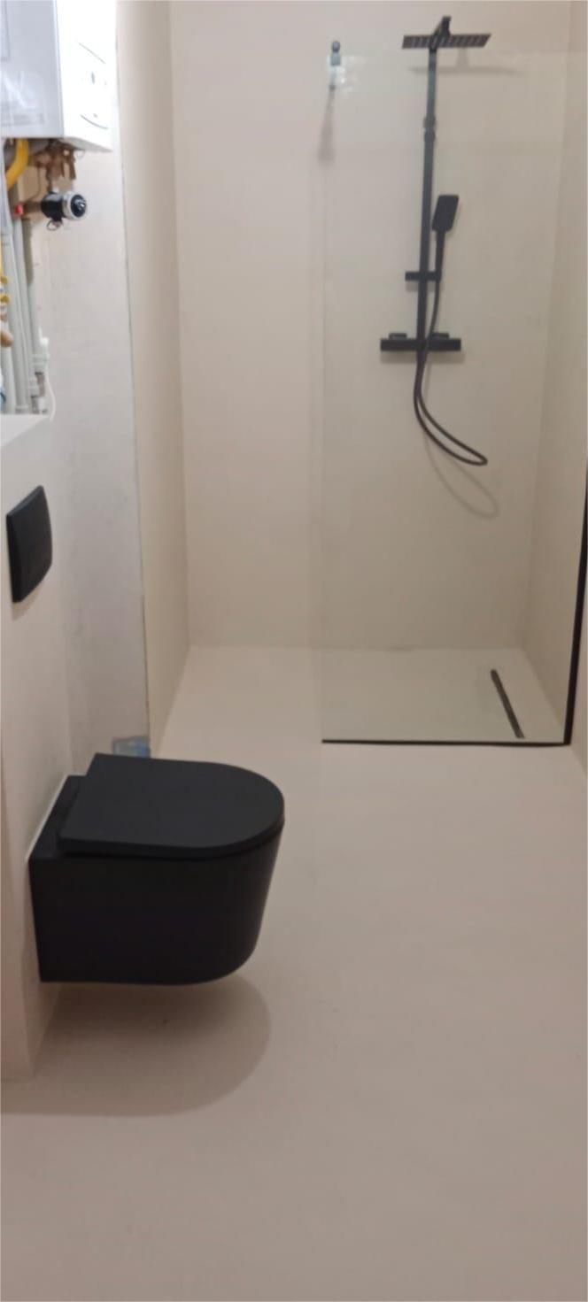 I-beton Plus is a decorative interior system designed for covering vertical and horizontal surfaces, as well as rooms that come into contact with water, such as bathrooms, kitchens, wellness centers, and other similar areas.