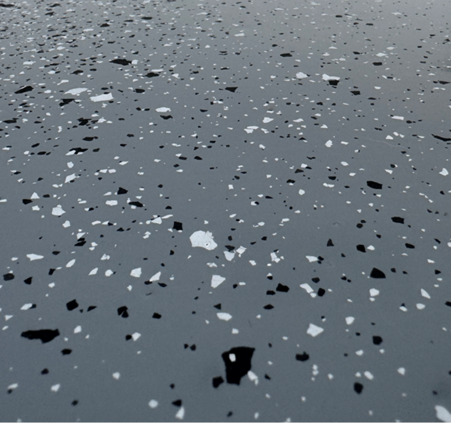 - Estetyka — nowoczesny, uniwersalny kolor i opcjonalne płatki dekoracyjne nadają podłodze schludny, profesjonalny wygląd.