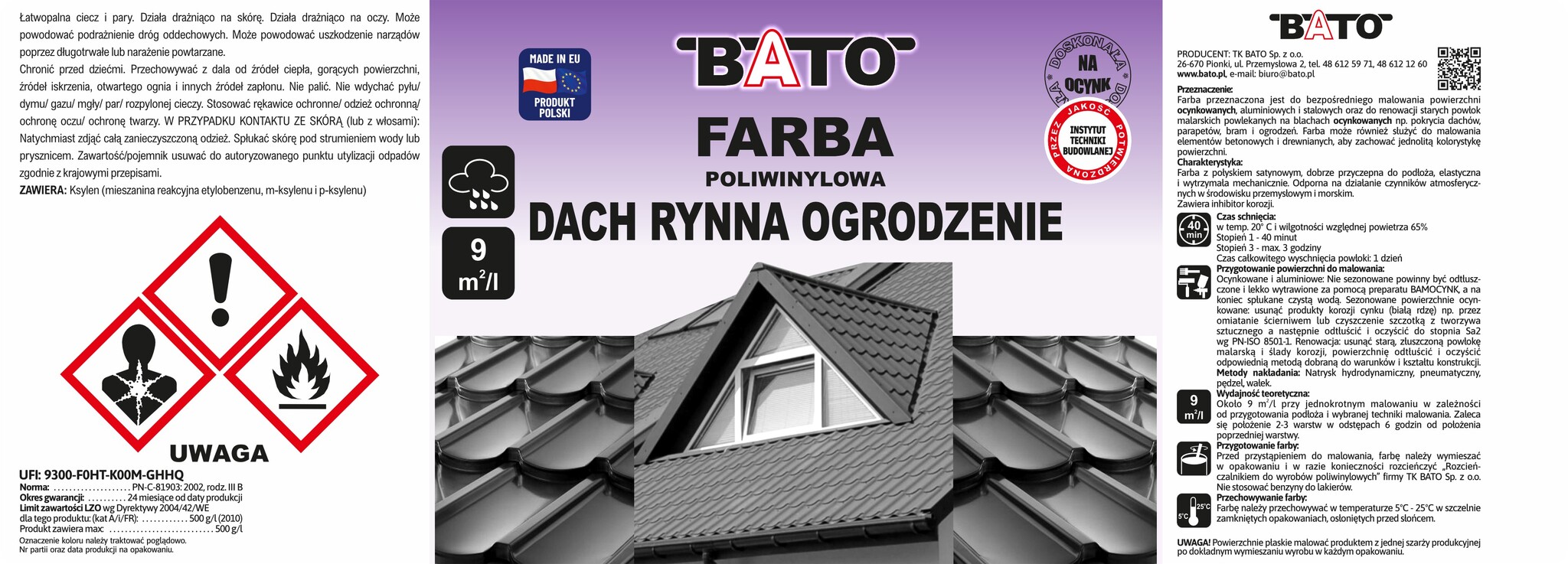 Farba poliwinylowa jest przeznaczona do malowania dachów, rynien, ogrodzeń oraz innych powierzchni stalowych i ocynkowanych, zapewniając skuteczną ochronę przed korozją.