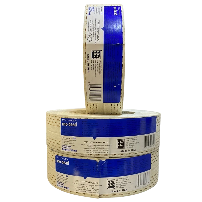 Niebieska taśma tuff tape Uno-Bead jest przeznaczona do łączenia płyt kartonowo-gipsowych w narożnikach wewnętrznych oraz na płaskich powierzchniach.