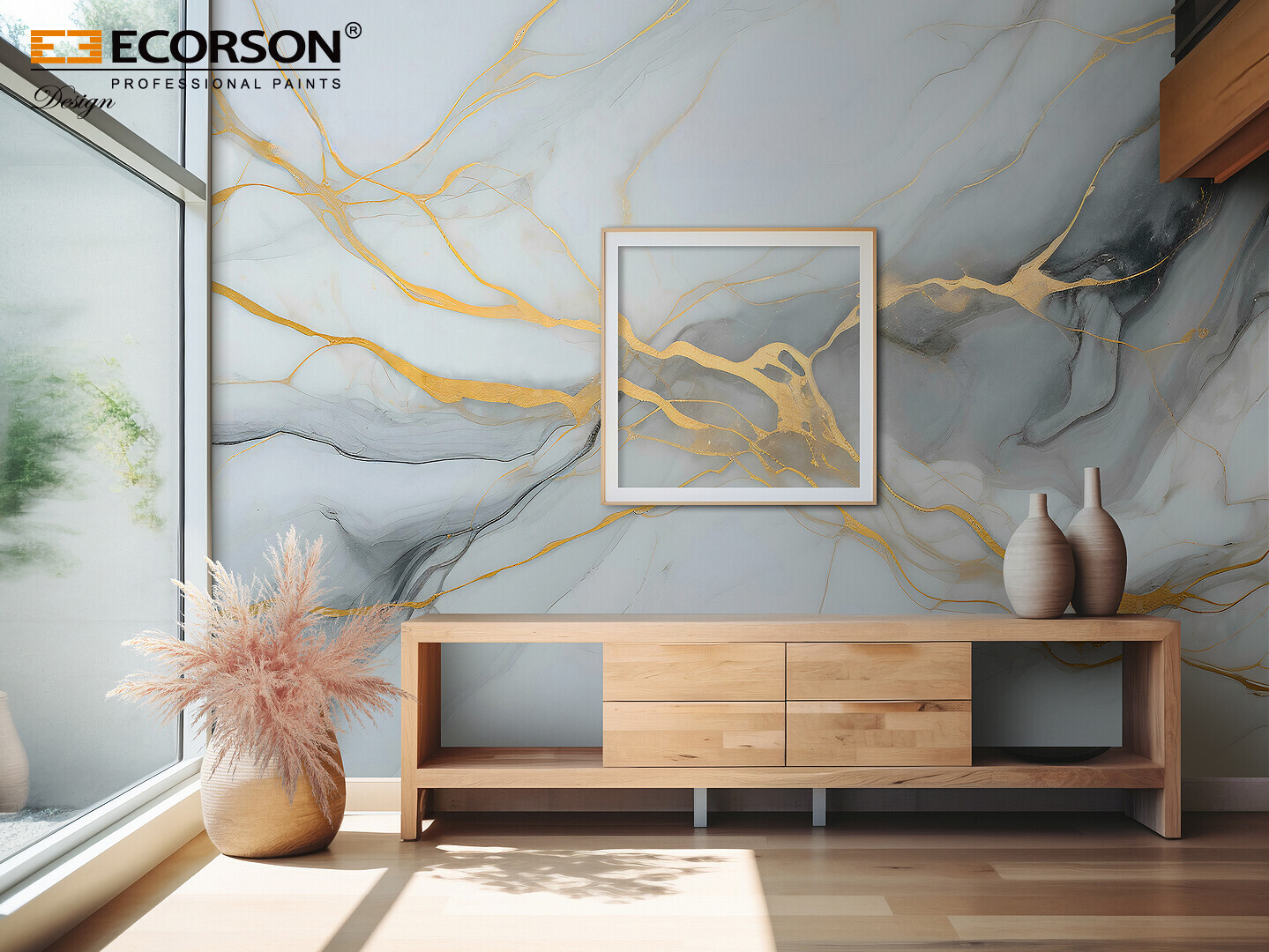 •  Efekt końcowy przypomina wyglądem naturalny marmur, oferując głęboki połysk i subtelne przejścia tonalne.