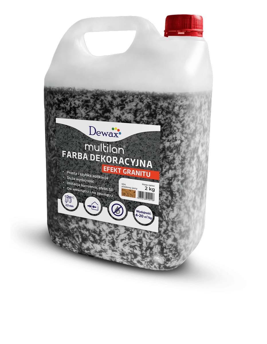 Farba dekoracyjna Multilan - płynny granit jest przeznaczona do ozdobnego malowania ścian i sufitów wewnątrz pomieszczeń.