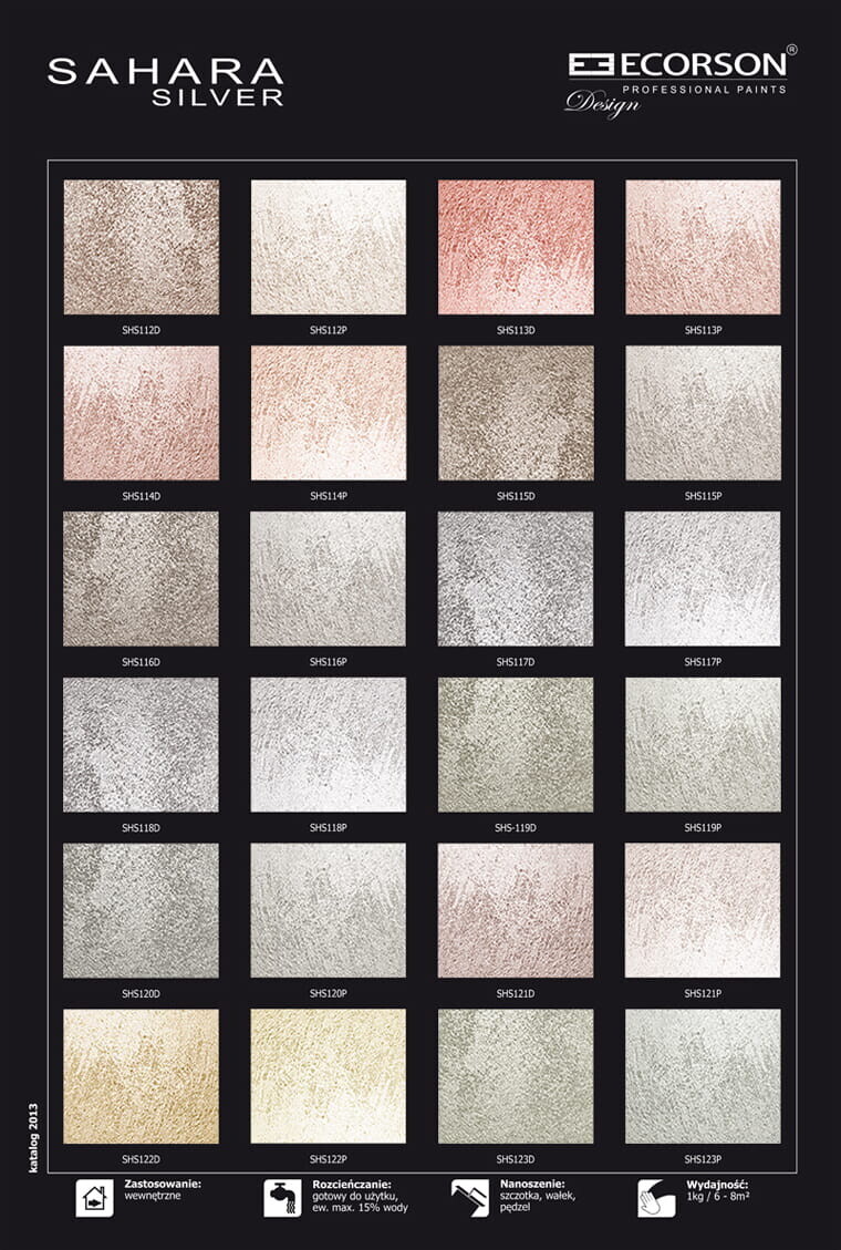 Strukturalna farba dekoracyjna Sahara Silver to unikalny produkt, który przenosi piękno i blask pustyni do wnętrz.