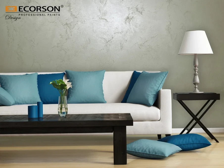 Strukturalna farba dekoracyjna Sahara Silver to unikalny produkt, który przenosi piękno i blask pustyni do wnętrz.