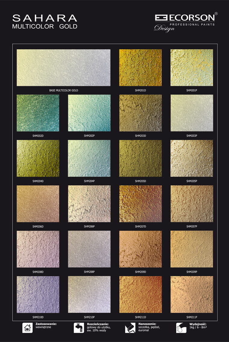 Szeroka gama kolorystyczna i różnorodność efektów pozwalają na nieograniczone możliwości aranżacyjne, co czyni farbę idealną dla architektów, projektantów wnętrz i wykonawców.