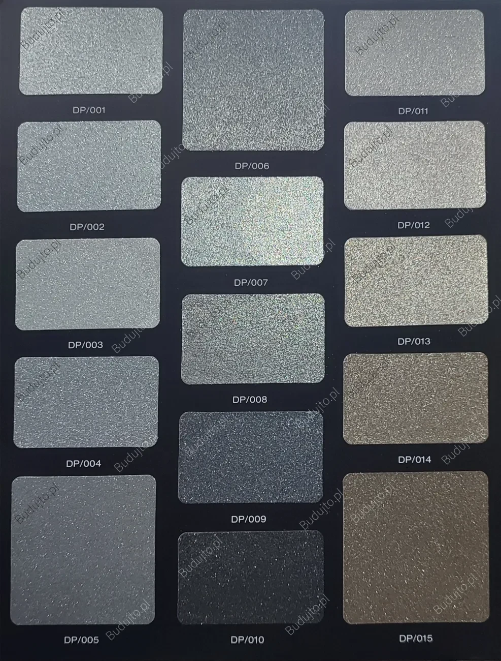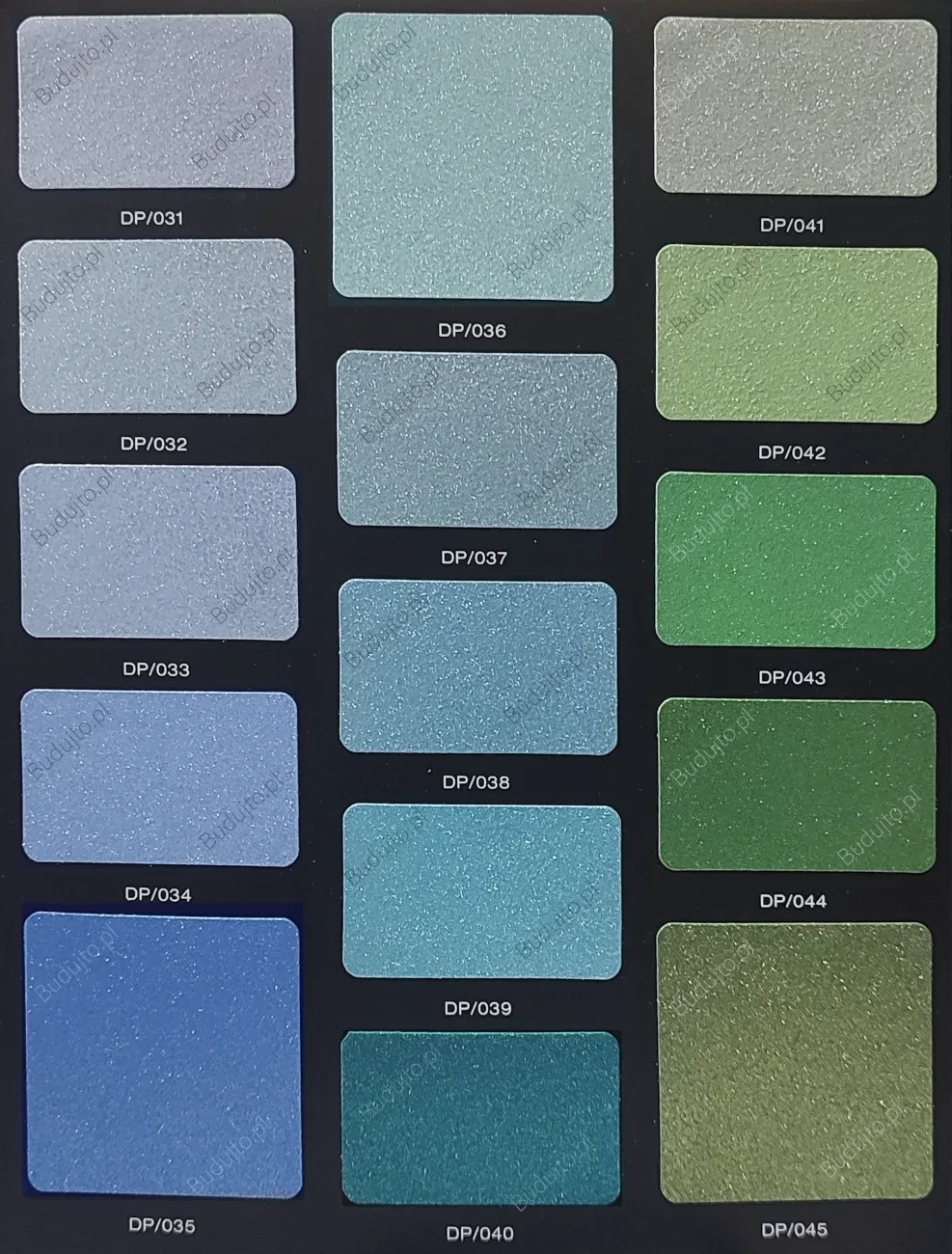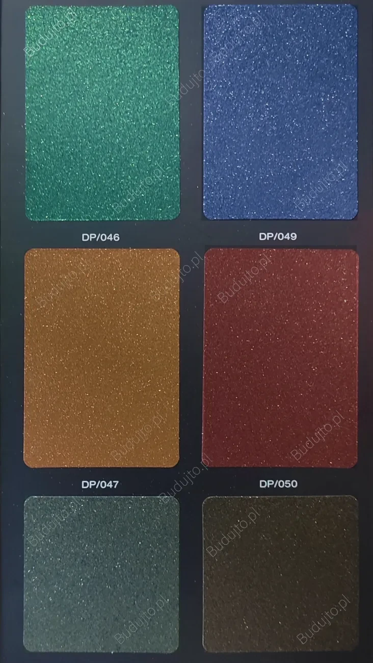 Farba o efekcie diamentowego pyłu i podkład tworzą kompletny zestaw, aby osiągnąć wybrany kolor z wzornika. Podkład i farba są barwione.