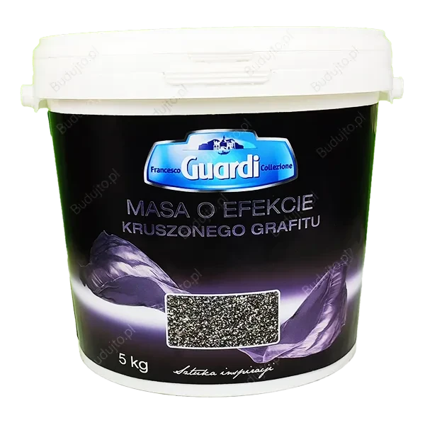 Przede wszystkim, masa ta, dzięki swojej unikalnej teksturze, przypominającej kruszony grafit, daje efekt głębokiej, trójwymiarowej przestrzeni na ścianie.
