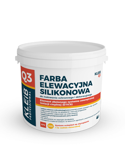Farba silikonowa Q3 Kleib to wysokiej jakości produkt przeznaczony do ochronnego i dekoracyjnego malowania elewacji, idealny do podłoży mineralnych.