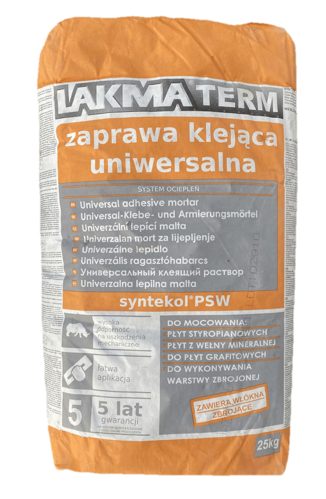 - Uniwersalność - do przyklejania wełny, styropianu bialego i grafitowego oraz siatki zbrojącej na wełnie i obu rodzajów styropianu.