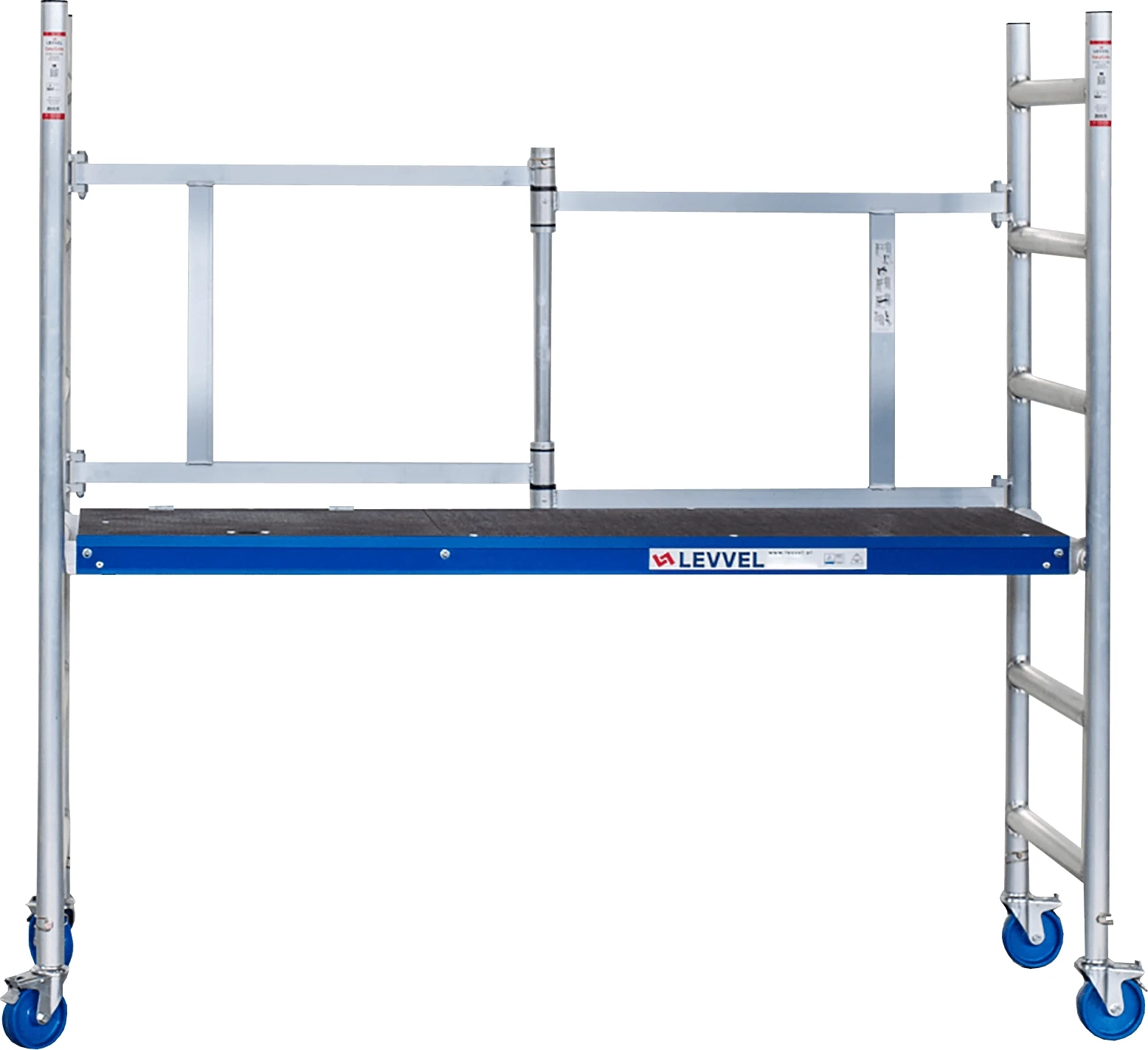 Levvel EasyGate 290 to nowoczesne, składane rusztowanie jezdne polskiego producenta, które charakteryzuje się kompaktowymi wymiarami 0,73 x 2,00 m.