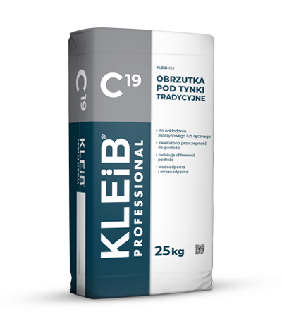 C19 jest to sucha zaprawa cementowa przeznaczona do wykonywania obrzutki tynkarskiej, stanowiącej warstwę sczepną pomiędzy podłożem a właściwym tynkiem. Produkt poprawia przyczepność kolejnych warstw, wyrównuje chłonność podłoża i zwiększa trwałość całego systemu tynkarskiego.