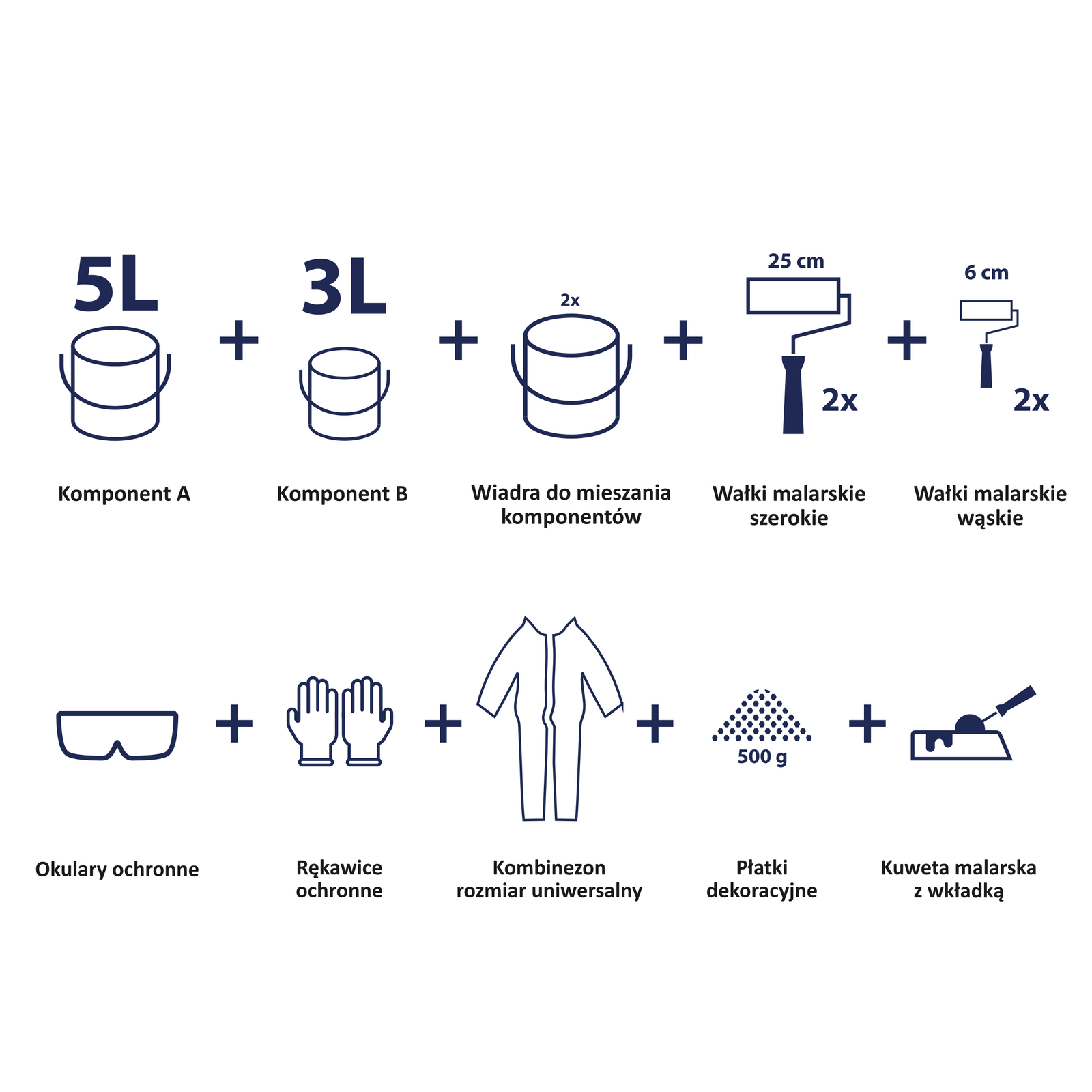 | Skład zestawu | żywica epoksydowa, utwardzacz, wałki aplikacyjne, płatki dekoracyjne (opcjonalne), oraz inne akcesoria aplikacyjne. |