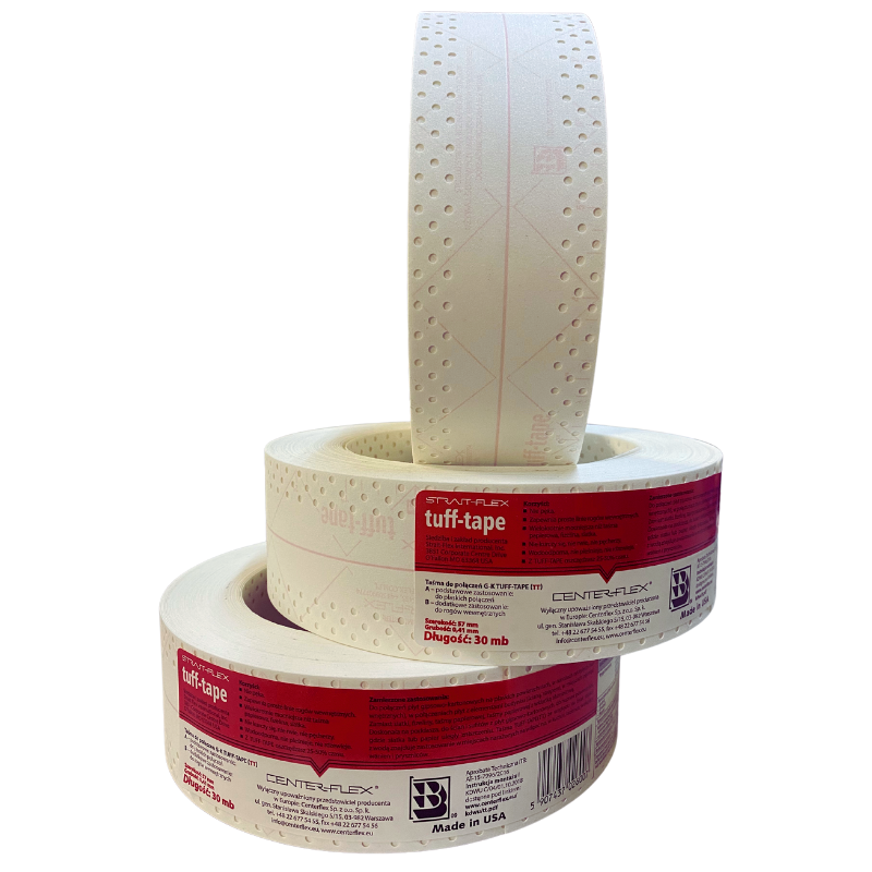 Taśma TUFF-TAPE jest przeznaczona do łączenia płyt gipsowo-kartonowych na płaskich powierzchniach, takich jak sufity i ściany. Jednyny pewny produkt na łączenia płyt G-K. Służąc również do wykańczania narożników wewnętrznych.