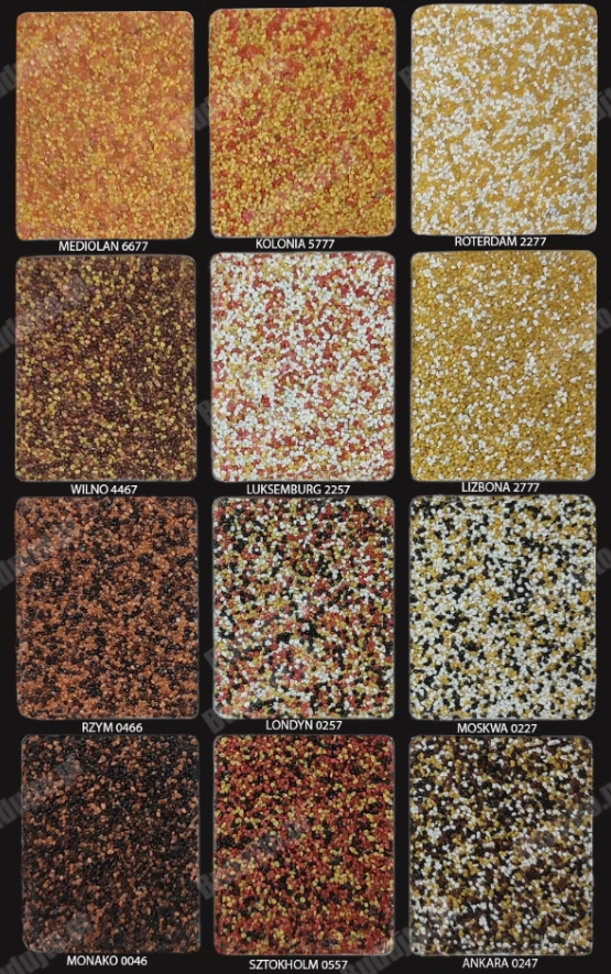 • Nakładany ręcznie pacą ze stali nierdzewnej na grubość ziarna. Idealny zarówno na zewnątrz, jak i wewnątrz budynków.