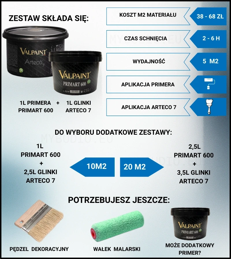Promocja-10% Efekt glinki weneckiej Arteco 7 - zestaw Arteco 7 jest to wszechstronna, wodna farba dekoracyjna, idealna do wnętrz, która wyróżnia się niezwykłymi efektami wizualnymi. Najtańsza dostawa od 20,91 zł SKU: Arteco-7-ZS Stan magazynowy: Duża ilość na magazynie Status dostawy: 1-3 dni Czas dostawy Wielkość zestawu -- Wybierz -- na 4-6m2 na 9-11m2 +148,97 zł na 19-21 m2 +448,07 zł Wybierz kolor Arteco 7 -- Wybierz -- 425 A1 425 A3 425 A4 425 B1 + P40 +50,43 zł 425 B3 + P40 +50,43 zł 425 B4 + P40 +50,43 zł 428 A1 428 A3 428 A4 428 B1 + P40 +50,43 zł 428 B3 + P40 +50,43 zł 428 B4 + P40 +50,43 zł 431 A1 431 A3 431 A4 431 B1 + P40 +50,43 zł 431 B3 + P40 +50,43 zł 431 B4 + P40 +50,43 zł 432 A1 432 A2 432 A3 432 A4 432 B1 + P40 +50,43 zł 432 B2 + P40 +50,43 zł 432 B3 + P40 +50,43 zł 432 B4 + P40 +50,43 zł 433 A1 433 A3 433 A4 433 B1 + P40 +50,43 zł 433 B3 + P40 +50,43 zł 433 B4 + P40 +50,43 zł 438 A1 438 A3 438 A4 438 B1 + P40 +50,43 zł 438 B3 + P40 +50,43 zł 438 B4 + P40 +50,43 zł 439 A1 439 A2 439 A3 439 A4 439 B1 + P40 +50,43 zł 439 B2 + P40 +50,43 zł 439 B3 + P40 +50,43 zł 439 B4 + P40 +50,43 zł 440 A1 440 A3 440 A4 440 B1 + P40 +50,43 zł 440 B3 + P40 +50,43 zł 440 B4 + P40 +50,43 zł 444 A1 444 A3 444 A4 444 B1 + P40 +50,43 zł 444 B3 + P40 +50,43 zł 444 B4 + P40 +50,43 zł 445 A1 445 A3 445 A4 445 B1 + P40 +50,43 zł 445 B3 + P40 +50,43 zł 445 B4 + P40 +50,43 zł 446 A1 446 A3 446 A4 446 B1 + P40 +50,43 zł 446 B3 + P40 +50,43 zł 446 B4 + P40 +50,43 zł 448 A1 448 A3 448 A4 448 B1 + P40 +50,43 zł 448 B3 + P40 +50,43 zł 448 B4 + P40 +50,43 zł 457 A1 457 A3 457 A4 457 B1 + P40 +50,43 zł 457 B3 + P40 +50,43 zł 457 B4 + P40 +50,43 zł 461 A1 461 A3 461 A4 461 B1 + P40 +50,43 zł 461 B3 + P40 +50,43 zł 461 B4 + P40 +50,43 zł 465 A1 465 A2 465 A3 465 A4 465 B1 + P40 +50,43 zł 465 B2 + P40 +50,43 zł 465 B3 + P40 +50,43 zł 465 B4 + P40 +50,43 zł 466 A1 466 A2 466 A3 466 A4 466 B1 + P40 +50,43 zł 466 B2 + P40 +50,43 zł 466 B3 + P40 +50,43 zł 466 B4 + P40 +50,43 zł 467 A1 467 A3 467 A4 467 B1 + P40 +50,43 zł 467 B3 + P40 +50,43 zł 467 B4 + P40 +50,43 zł 470 A1 470 A3 470 A4 470 B1 + P40 +50,43 zł 470 B3 + P40 +50,43 zł 470 B4 + P40 +50,43 zł 471 A1 471 A3 471 A4 471 B1 + P40 +50,43 zł 471 B3 + P40 +50,43 zł 471 B4 + P40 +50,43 zł 476 A1 476 A2 476 A3 476 A4 476 B1 + P40 +50,43 zł 476 B2 + P40 +50,43 zł 476 B3 + P40 +50,43 zł 476 B4 + P40 +50,43 zł 479 A1 479 A3 479 A4 479 B1 + P40 +50,43 zł 479 B3 + P40 +50,43 zł 479 B4 + P40 +50,43 zł 480 A1 480 A3 480 A4 480 B1 + P40 +50,43 zł 480 B3 + P40 +50,43 zł 480 B4 + P40 +50,43 zł 482 A1 482 A3 482 A4 482 B1 + P40 +50,43 zł 482 B3 + P40 +50,43 zł 482 B4 + P40 +50,43 zł 483 A1 483 A3 483 A4 483 B1 + P40 +50,43 zł 483 B3 + P40 +50,43 zł 483 B4 + P40 +50,43 zł 496 A1 496 A2 496 A3 496 A4 496 B1 + P40 +50,43 zł 496 B2 + P40 +50,43 zł 496 B3 + P40 +50,43 zł 496 B4 + P40 +50,43 zł 497 A1 497 A3 497 A4 497 B1 + P40 +50,43 zł 497 B3 + P40 +50,43 zł 497 B4 + P40 +50,43 zł 506 A1 + L50 +274,29 zł 506 B1 + P40 + L50 +325,95 zł 507 A1 + L50 +274,29 zł 507 B1 + P40 + L50 +325,95 zł 512 A1 + L50 +274,29 zł 512 B1 + P40 + L50 +325,95 zł 513 A1 + L50 +274,29 zł 513 B1 + P40 + L50 +325,95 zł 514 A1 + L50 +274,29 zł 514 B1 + P40 + L50 +325,95 zł 515 A1 + L50 +274,29 zł 515 B1 + P40 + L50 +325,95 zł 516 A1 + L50 +274,29 zł 516 B1 + P40 + L50 +325,95 zł 517 A1 + L50 +274,29 zł 517 B1 + P40 + L50 +325,95 zł 518 A1 + L50 +274,29 zł 518 B1 + P40 + L50 +325,95 zł 519 A1 + L50 +274,29 zł 519 B1 + P40 + L50 +325,95 zł 520 A1 + L50 +274,29 zł 520 B1 + P40 + L50 +325,95 zł 532 A1 532 A3 532 A4 532 B1 + P40 +50,43 zł 532 B3 + P40 +50,43 zł 532 B4 + P40 +50,43 zł 534 A1 534 A3 534 A4 534 B1 + P40 +50,43 zł 534 B3 + P40 +50,43 zł 534 B4 + P40 +50,43 zł 536 A1 536 A2 536 A3 536 A4 536 B1 + P40 +50,43 zł 536 B2 + P40 +50,43 zł 536 B3 + P40 +50,43 zł 536 B4 + P40 +50,43 zł 537 A1 537 A3 537 A4 537 B1 + P40 +50,43 zł 537 B3 + P40 +50,43 zł 537 B4 + P40 +50,43 zł 538 A1 538 A2 538 A3 538 A4 538 B1 + P40 +50,43 zł 538 B2 + P40 +50,43 zł 538 B3 + P40 +50,43 zł 538 B4 + P40 +50,43 zł Otwórz kalkulator i oblicz potrzebny materiał Kalkulator MyBudio × 1. Wybierz kolor i warianty: 2. Ile m² powierzchni planujesz wykończyć? m² Oblicz Zestawienie materiałów: Wartość zestawu: Zestaw został dodany! Materiały zostały pomyślnie umieszczone w Twoim koszyku. Kasa KONTYNUUJ ZAKUPY 366,54 zł 329,89 zł W tym Podatek VAT: 61,69 zł Oferta wygasa 3 mar 2026 00:00. Ilość szt Do koszyka Zamów telefonicznie × Zamówienia telefonicznie przyjmujemy: Zadzwoń: +48 516 932 265 Zapłać wygodnie blikiem lub zamów z płatnością u kuriera - szczegóły podczas rozmowy Oblicz ilość potrzebnych materiałów z pomocą kalkulatora na stronie produktu lub skorzystaj pomocy sprzedawcy Opis Efekt glinki weneckiej Arteco 7 - zestawFarba Arteco 7 jest wszechstronna i efektowna wizualnie, na bazie wody, przeznaczona do wnętrz. Jest to farba o efekcie glinki weneckiej. Zestaw składa się z farby podkładowej i farby dekoracyjnej.Umożliwia tworzenie różnych dekoracyjnych efektów, w tym najbardziej pożądanych wykończeń metalicznych. Właściwości Arteco 7:Łatwa w aplikacji.Możliwość osiągnięcia unikalnych, efektownych wykończeń.Po pełnym utwardzeniu powłoka staje się przepuszczalna dla powietrza, odporna na uderzenia i normalne ścieranie. Oferuje bogatą paletę kolorystyczną, a także opcje matowe, metalizowane, z efektem złocenia lub srebrzenia.Po 15 dniach od aplikacji farba jest zmywalna wodą i zwykłymi detergentami.Farba jest idealna do zastosowania na duże powierzchnie ścian, korytarzy i klatek schodowych.Dodatki do farby:L50 jest to dodatek metalizujący P40 jest to dodatek "kolorowych płatków" Najważniejsze Informacje Zestaw składa się z farby podkładowej, farby o efekcie glinki weneckiej + ewentualnych dodatków ____________ Zes